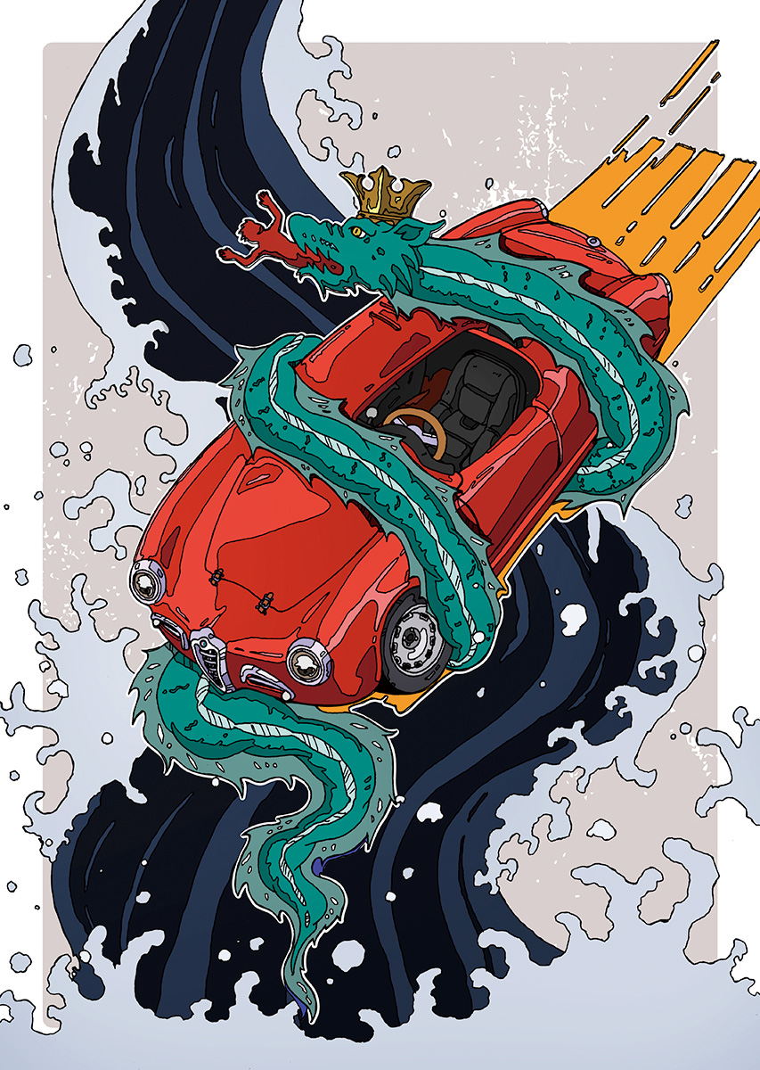 クラシックカーを中心にした乗り物のイラスト、そしてそこに生まれる物語をテーマにしたイラストを描いています。